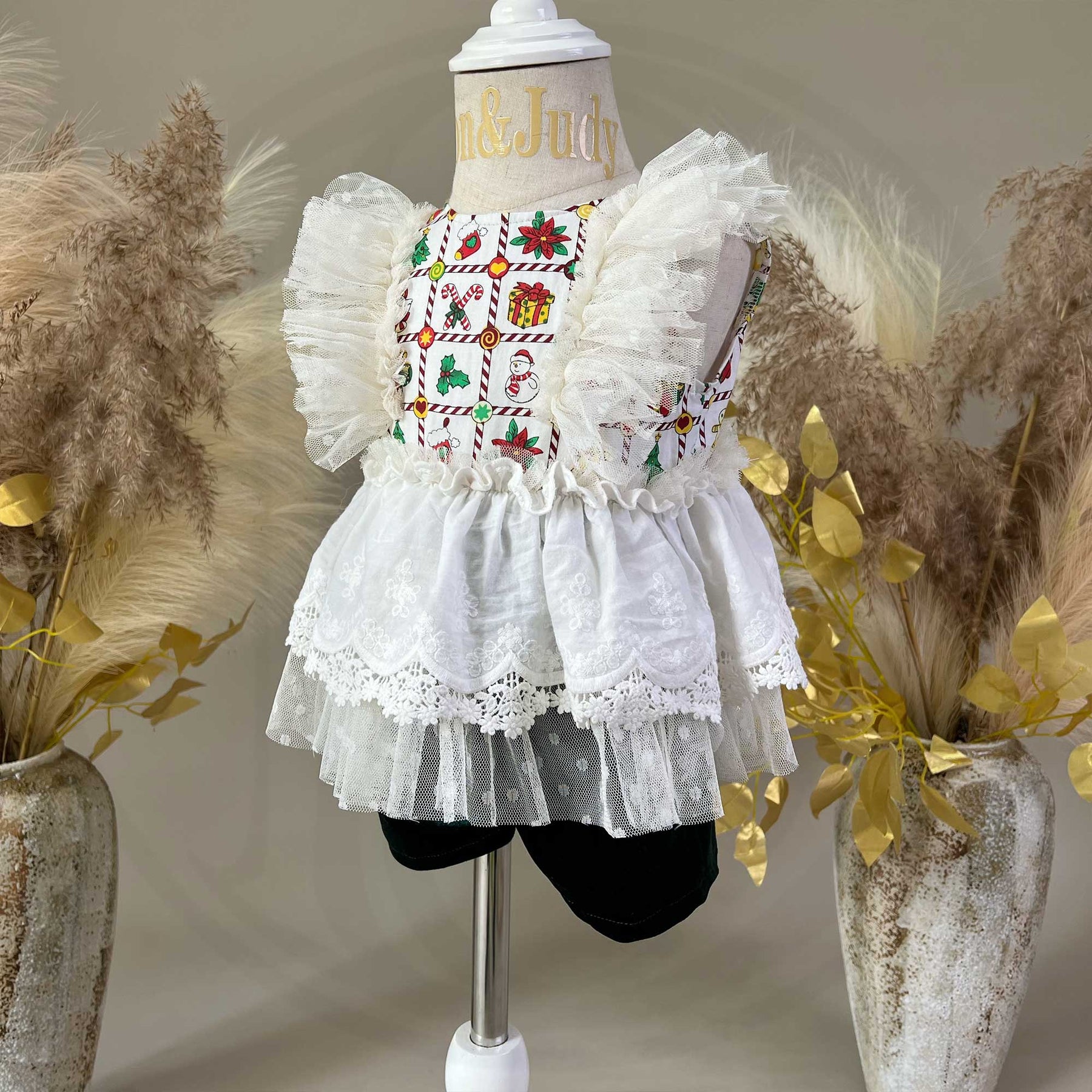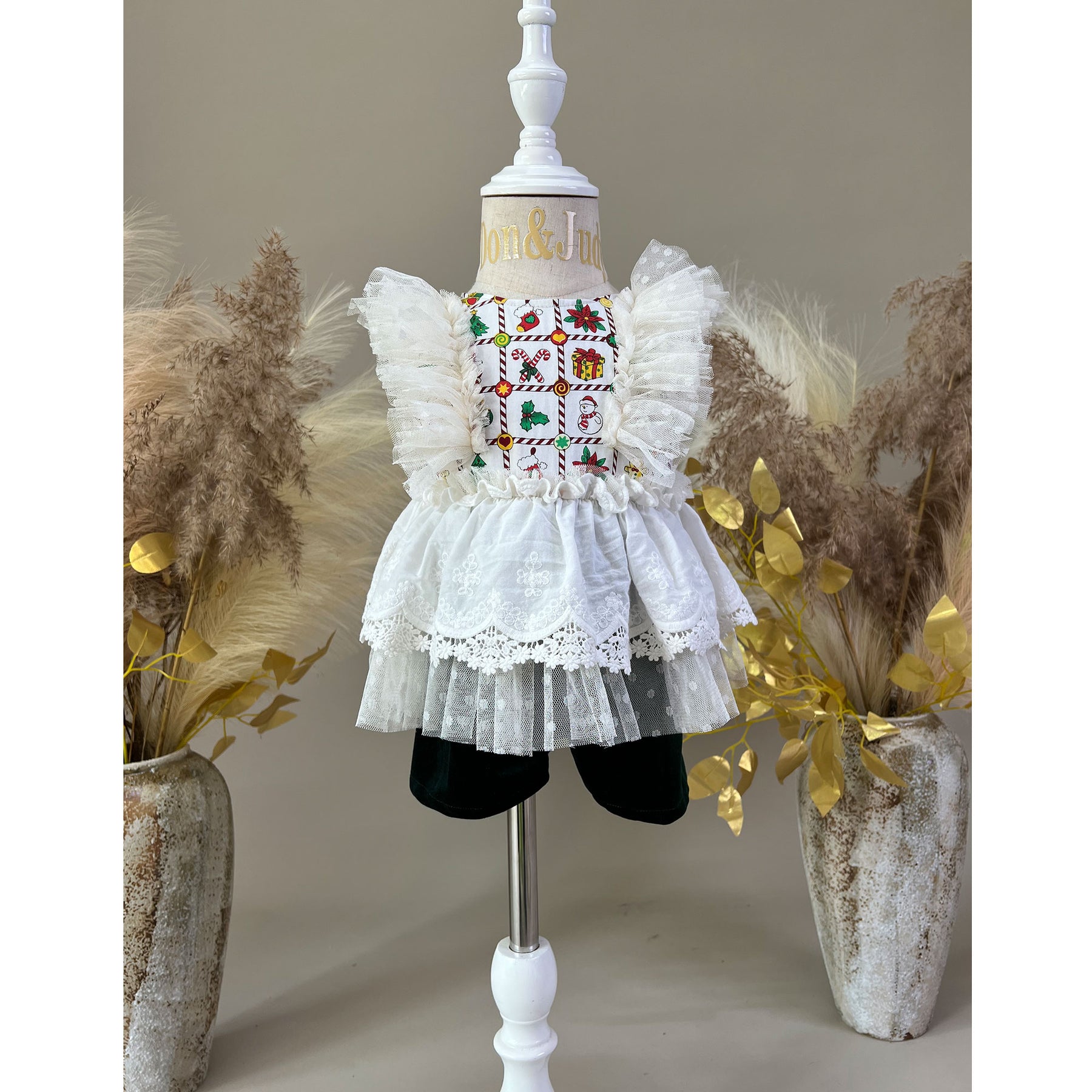 Product name: White Cotton Grid Print + Green Velvet Jumpsuit 1-6years Little Girls Dress for Photo Shoot Props Photography Accessories