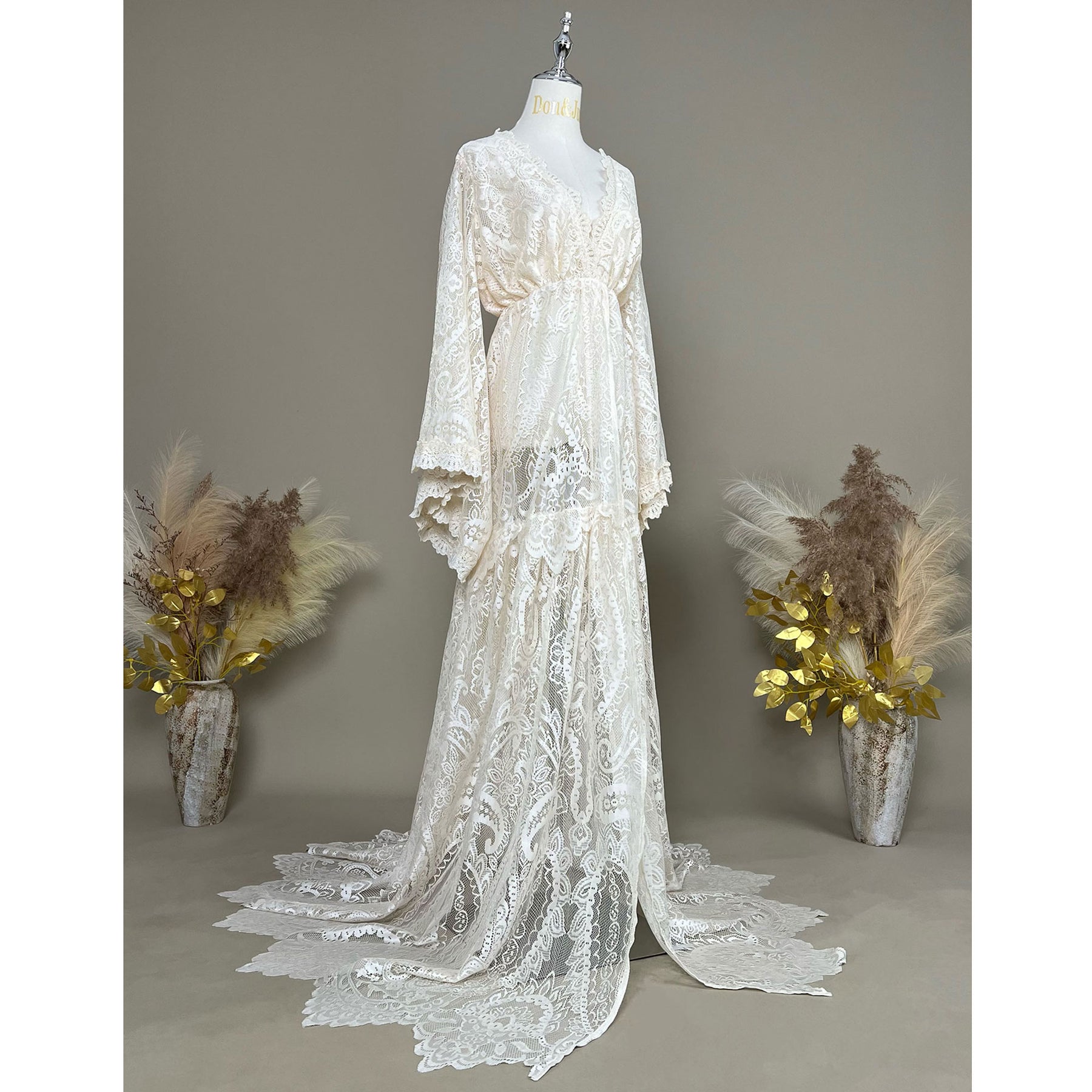 Product name: Bell Sleeves Hollow Lace Front Flit Maternity and Non-maternity Gown Photography Dress Evening Party Baby Shower for Photo Shoot