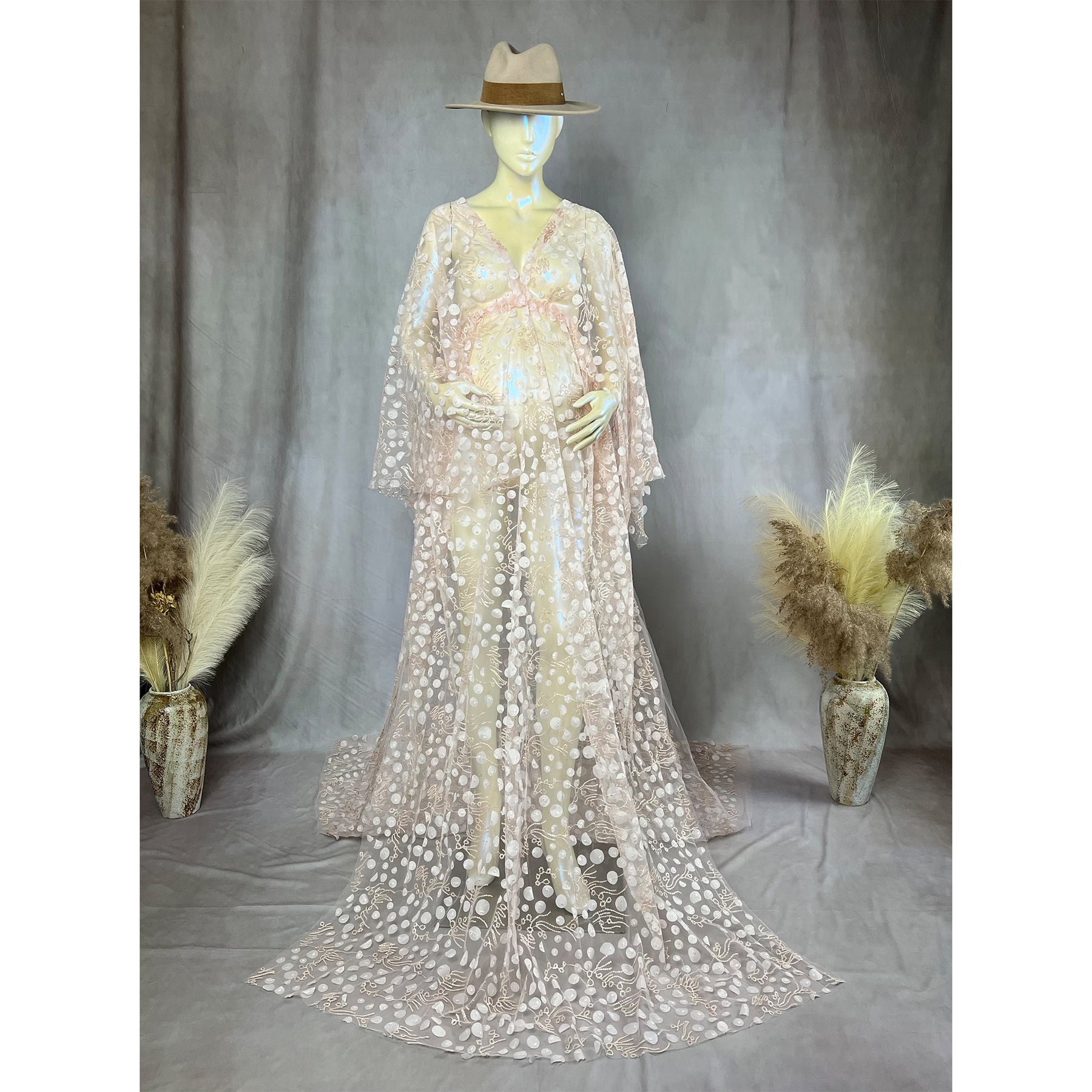 Product name: Maternity or Non-maternity Photo Shoot Costume Free Size Boho V-neck Long Sleeve Sequence Embroidery Floral Tulle Maternity Gown Photography Evening Party Dress Baby Shower Photo Props Kaftan Maternity Couture Sparkle Tulle Women Clothing