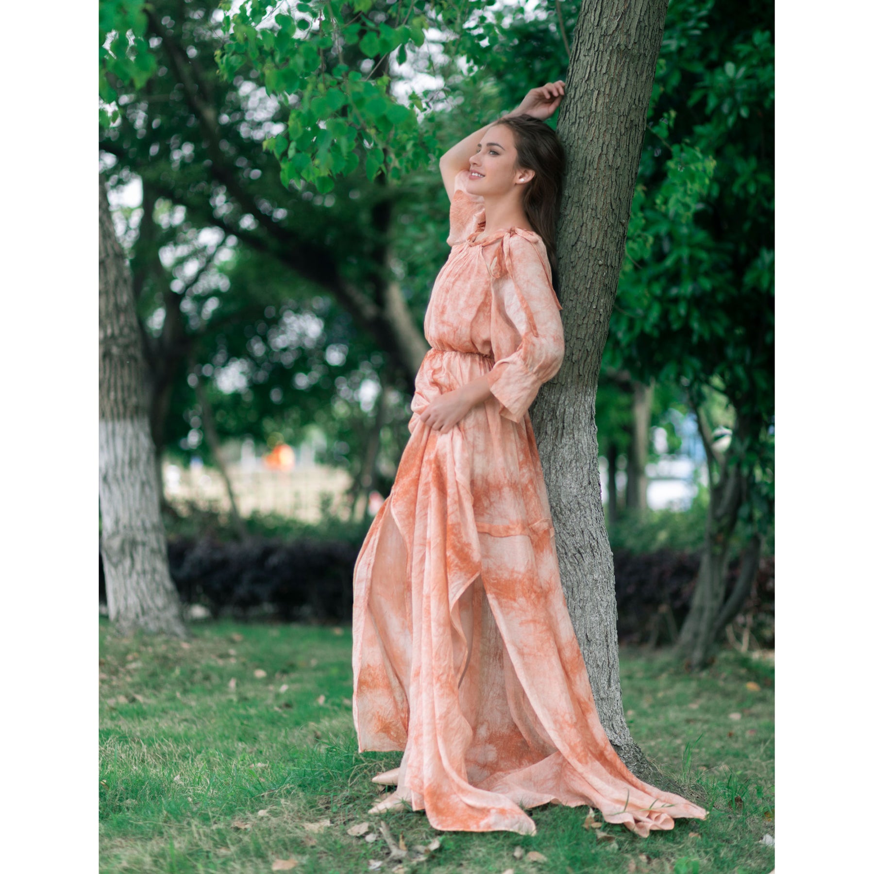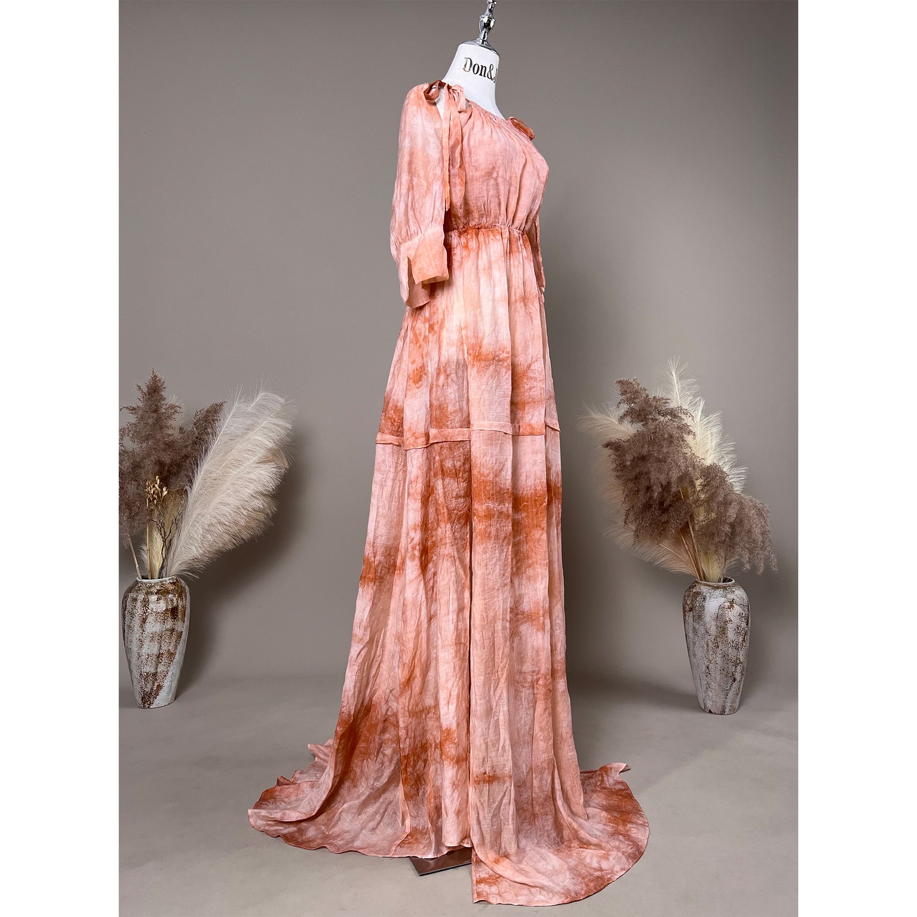 Product name:Light Rust Tie Dye Tencel Cotton Both Sides Maternity and Non-maternity Gown Photography Dress Evening Party Baby Shower for Photo Shoot