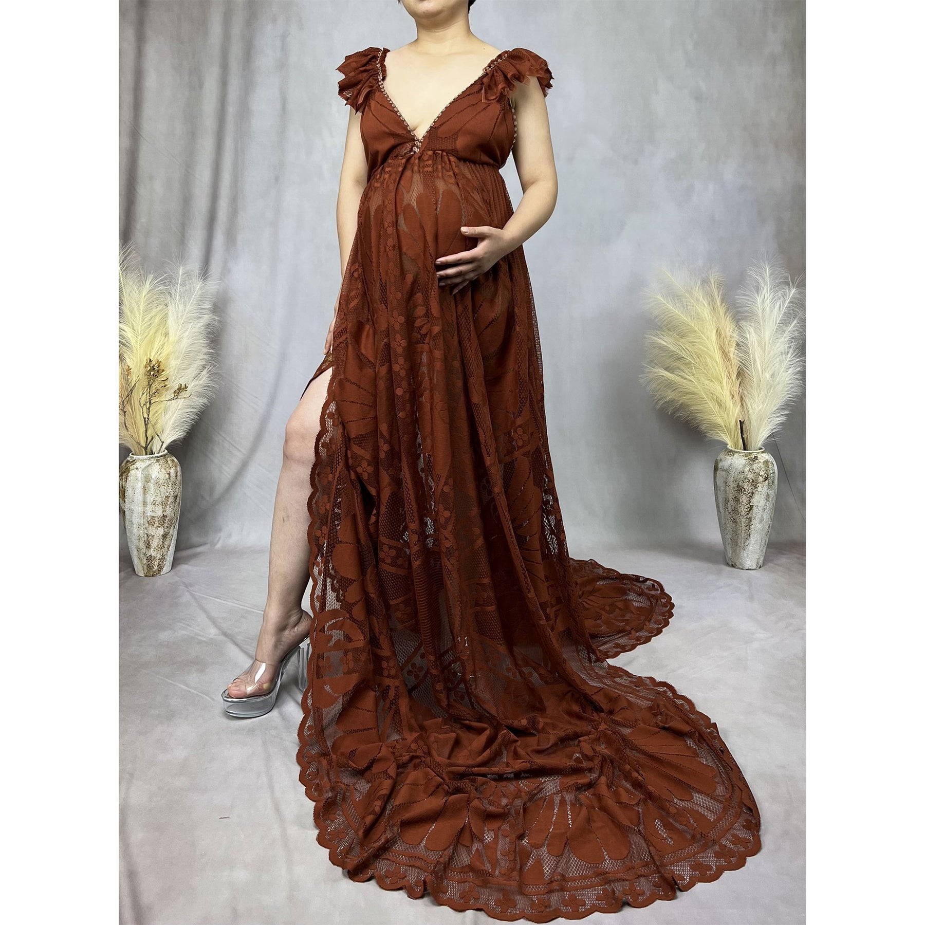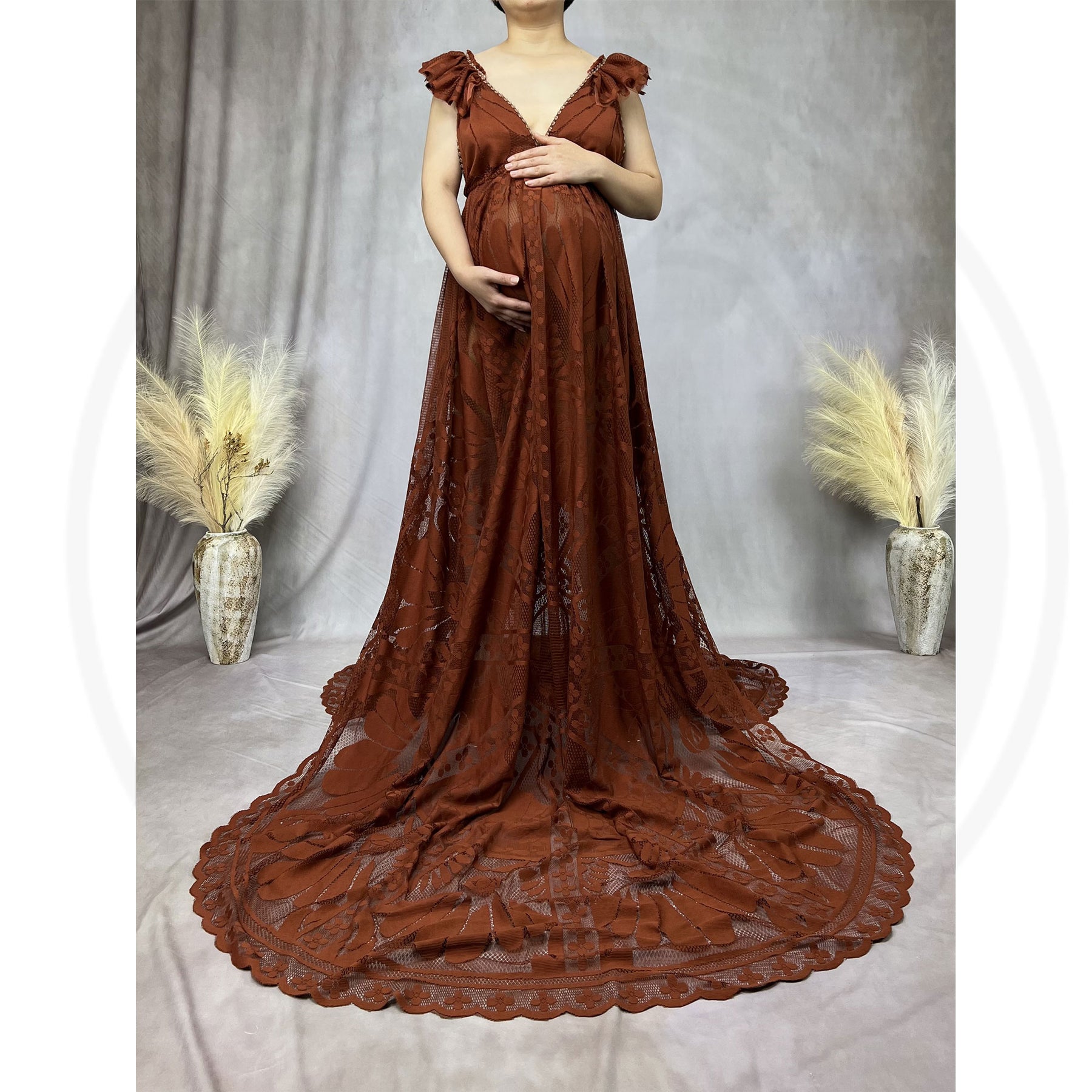 Product name: Deep V-neck Sleeveless Backless Slip Maternity Or Non-Maternity Lace Dress Photoshoot Props Pregnancy Gown Baby Shower Gifts