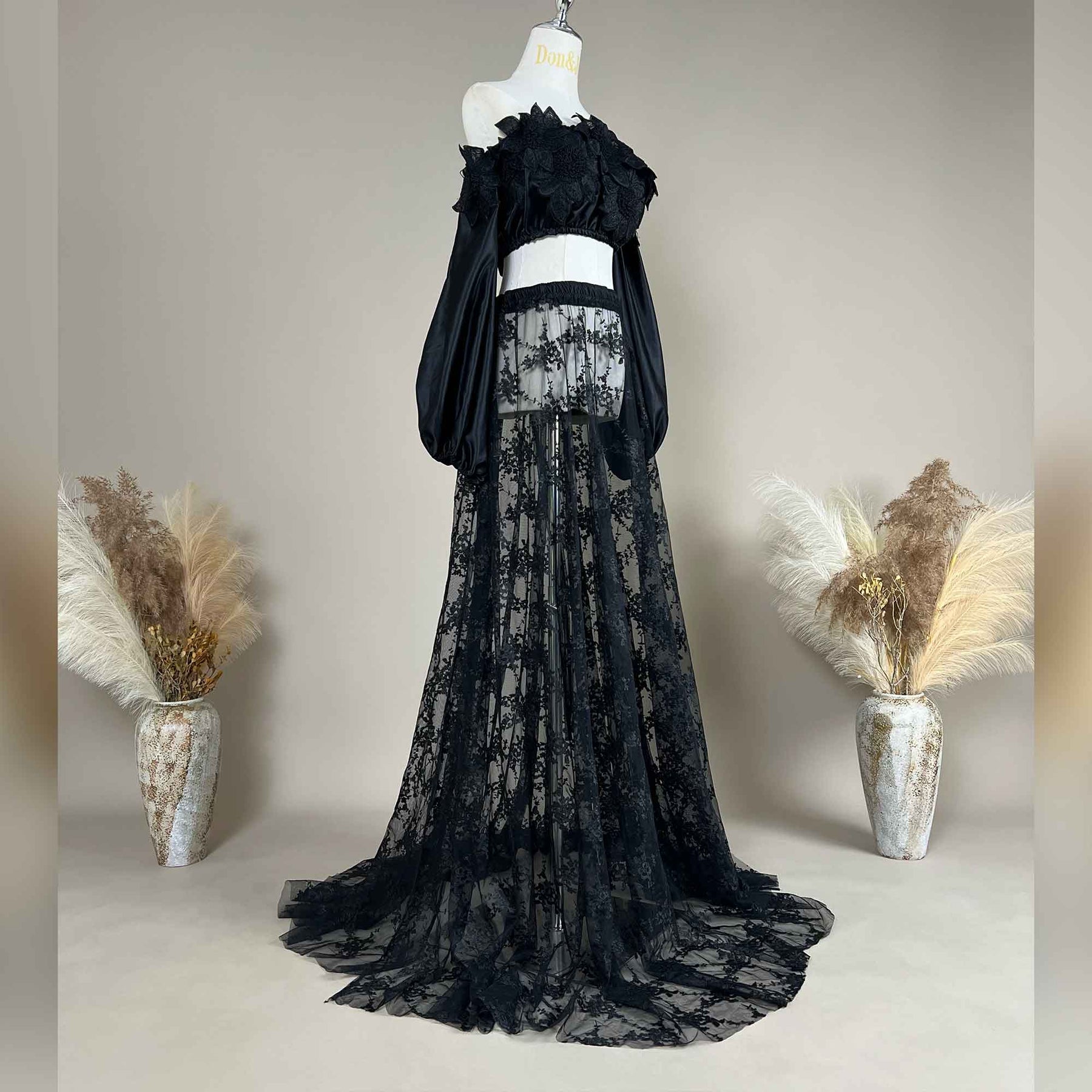 Product name: Halloween Black Sexy Flower Tulle Dresses Maternity or Non-maternity Gown Party Dresses for Photography Props Baby Shower Photo Props