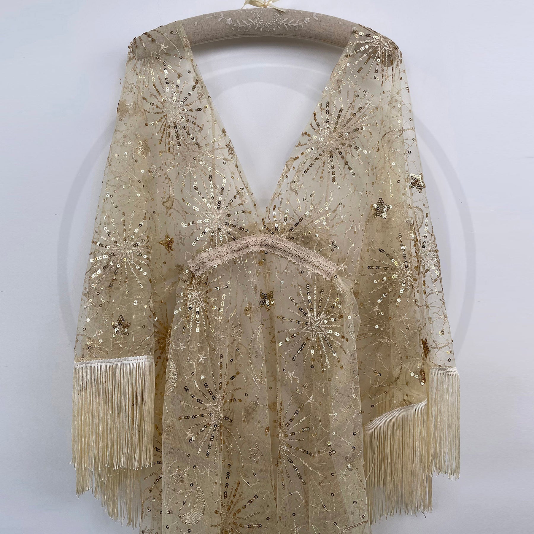 Product name: Sequence with Embroidery Moon and Star Mommy Gown with Matched Little Gilrs 9-24 Month and 3-6years Old Dress Set Boho Dress Pregnancy Photography Dresses Bohemia Maxi Gown Photo Shoot Prop