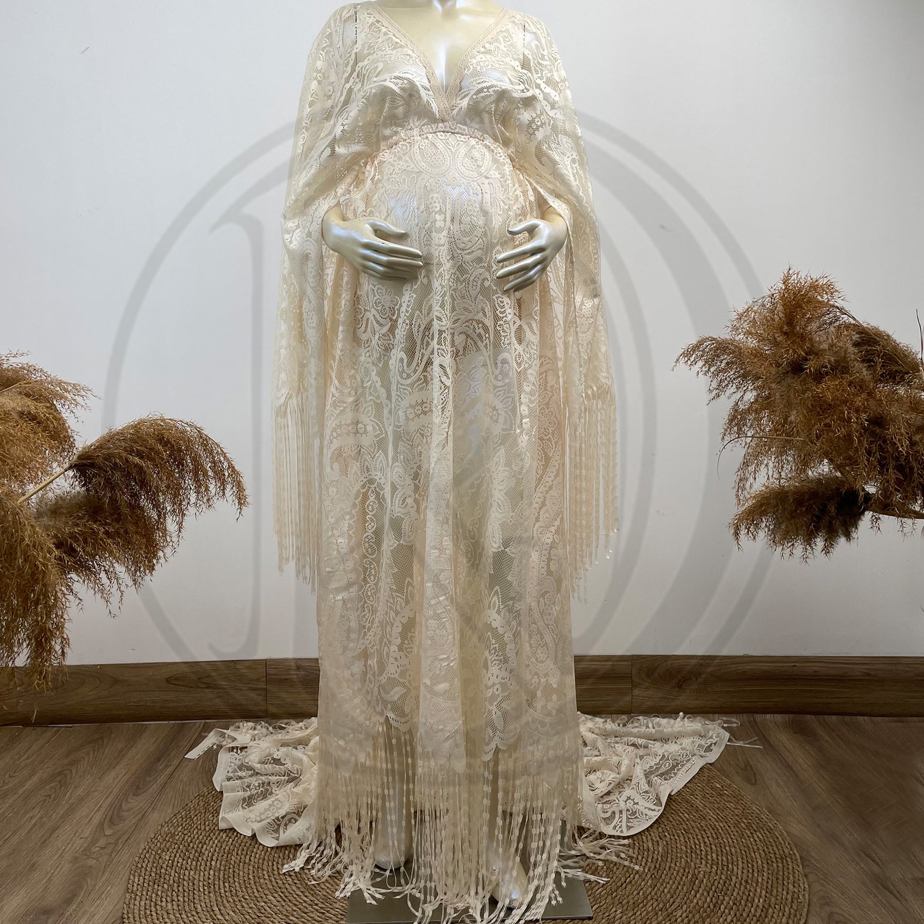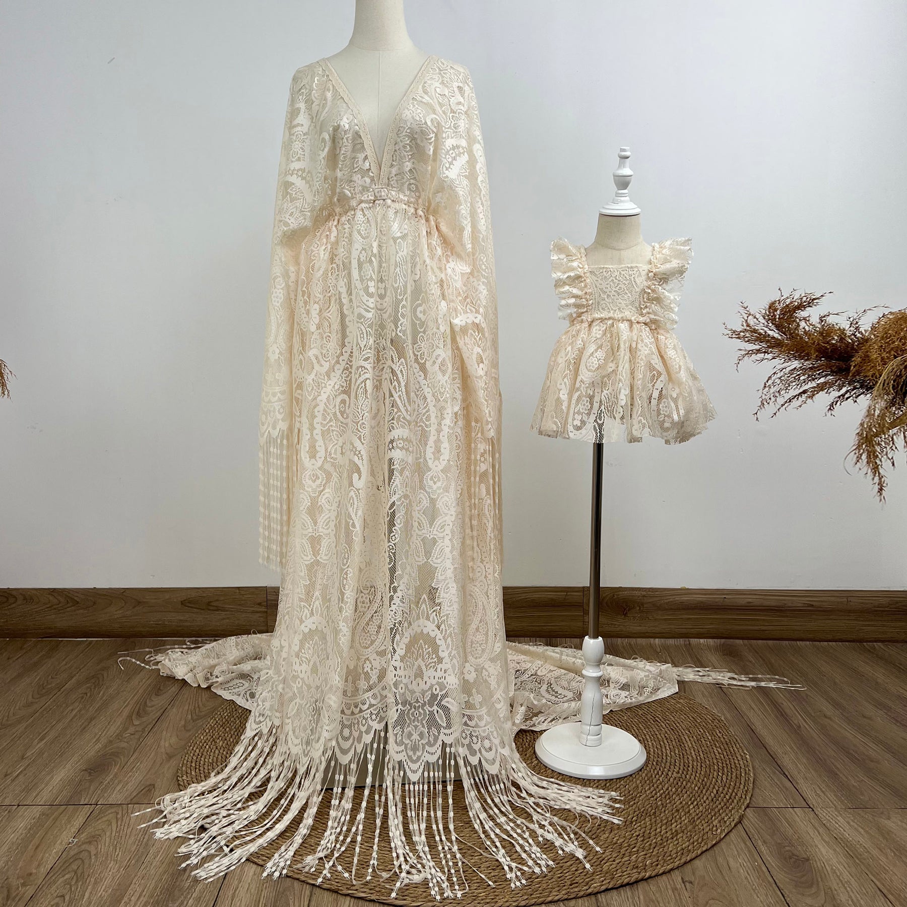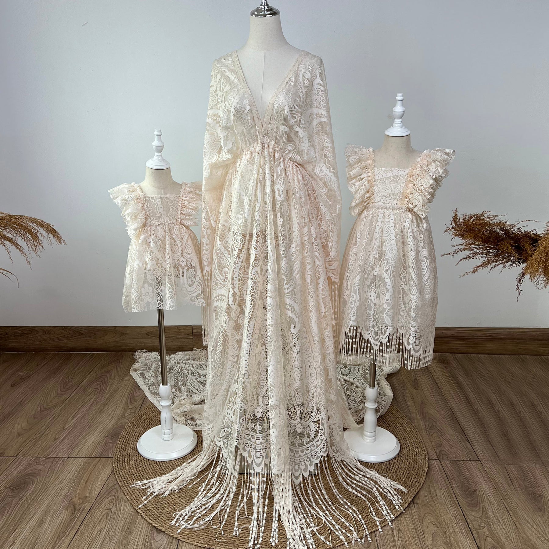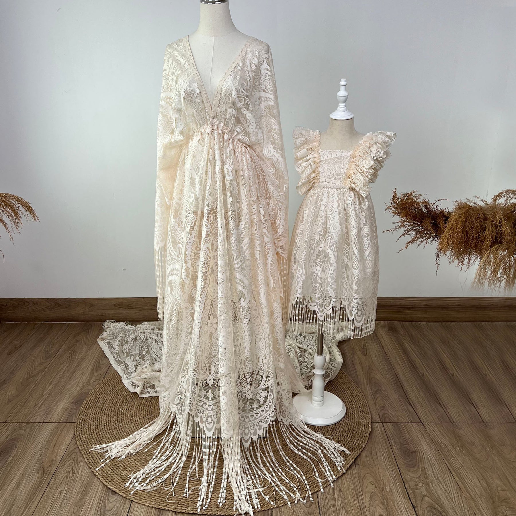 Product name:  Boho Lace Mommy Gown with Matched Little Gilrs Dress Set Pregnancy Photography Dresses Bohemia Maxi Gown Photo Shoot Prop