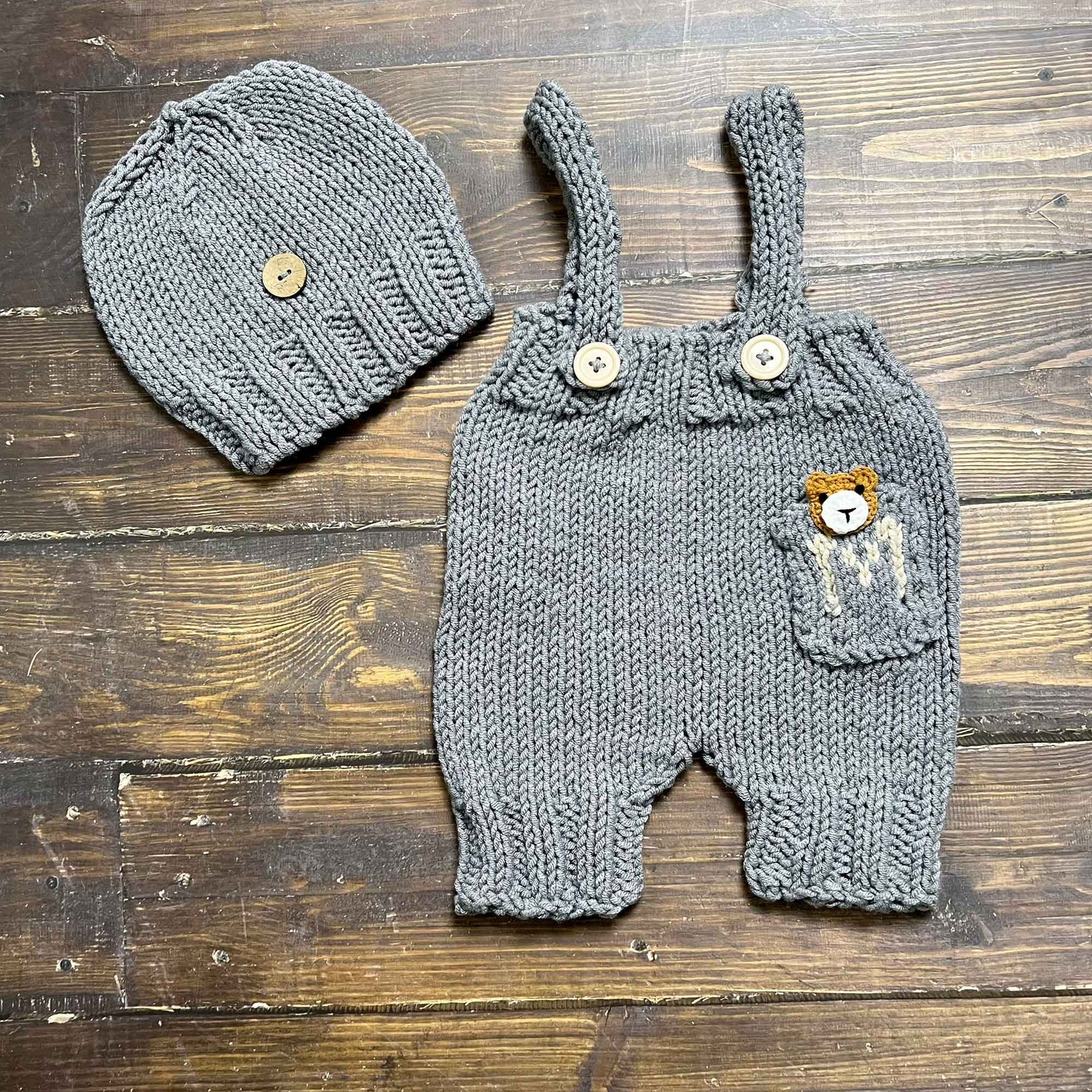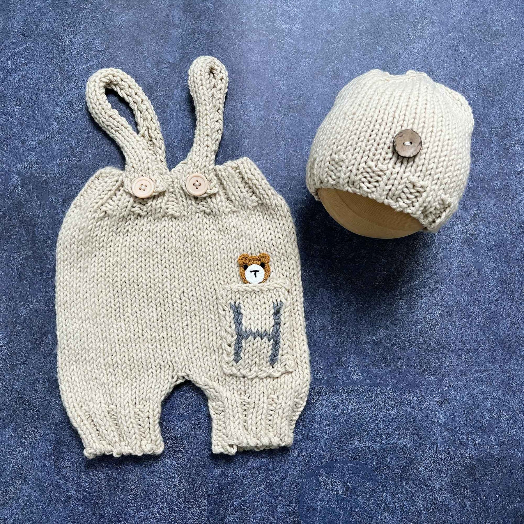 Product name: Bear Pocket Suspender Pants & Beanie Hat Set Photo Shoot Props Photography
