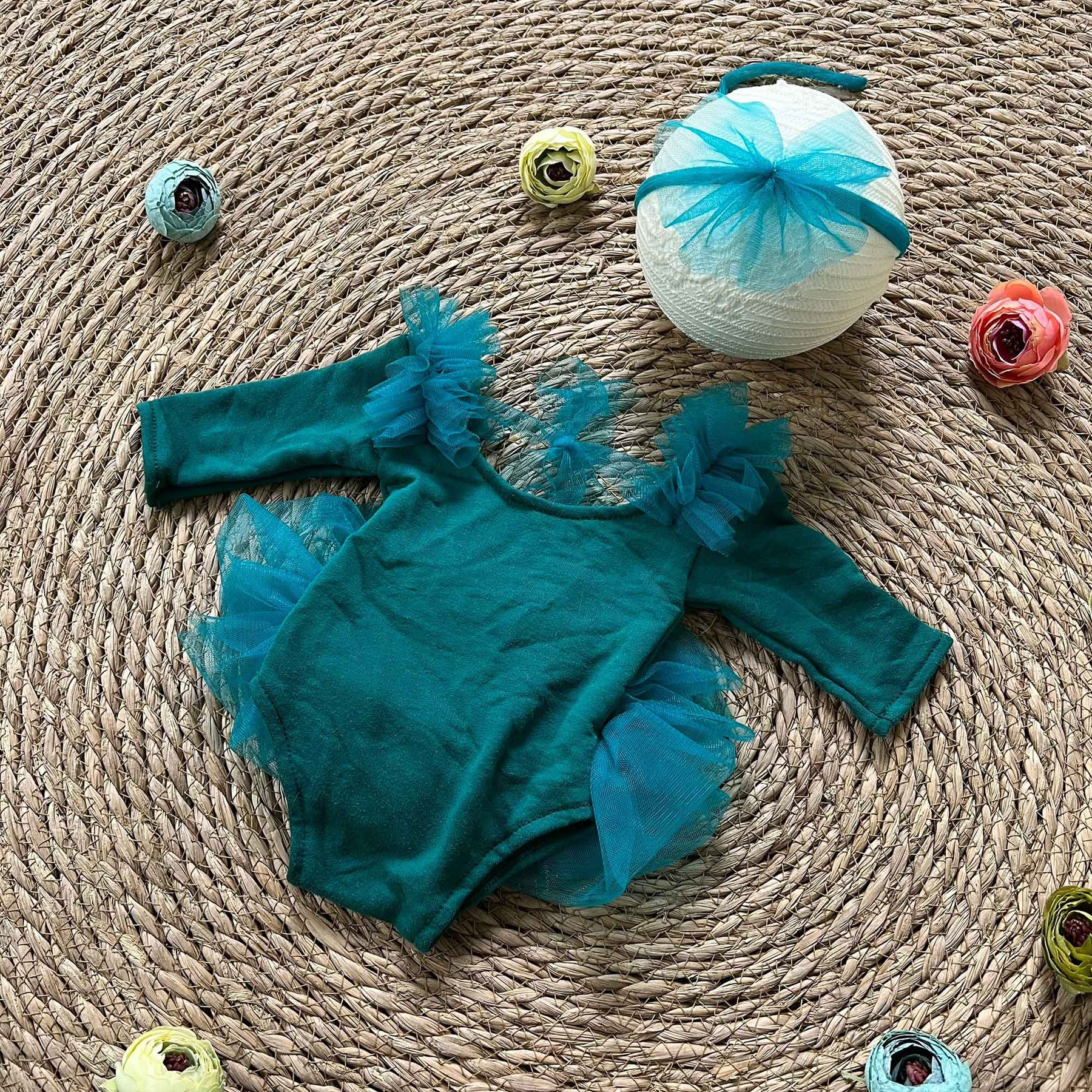 Product name: Dark Green Tulle Newborn Romper for Photography Props Photoshoot
