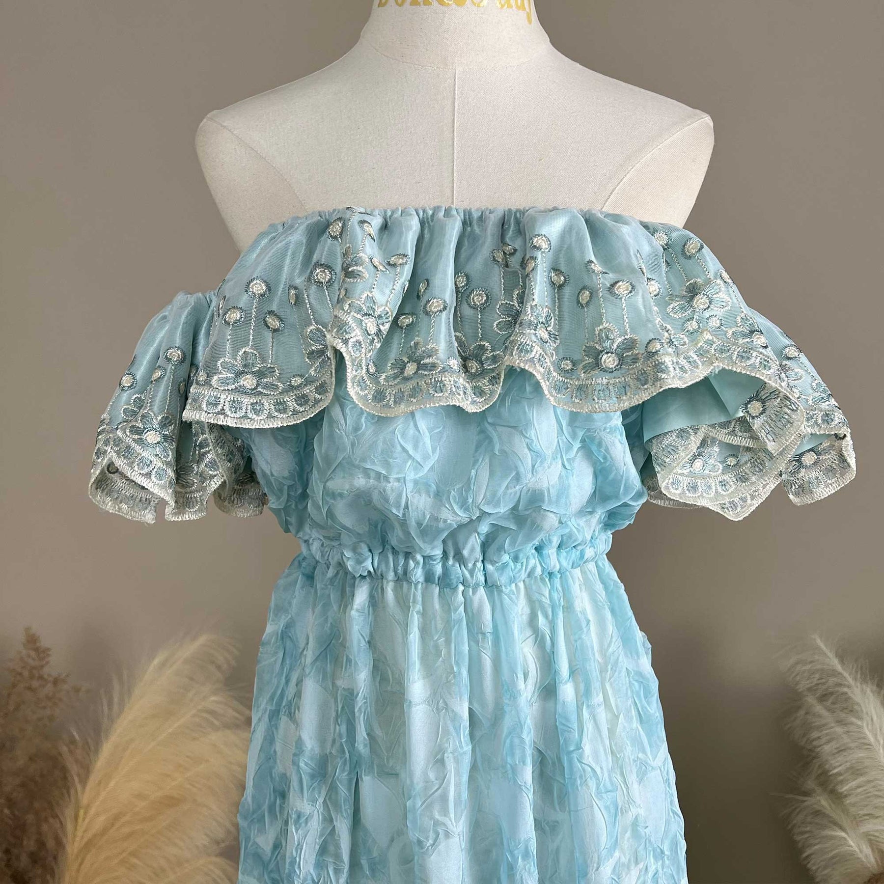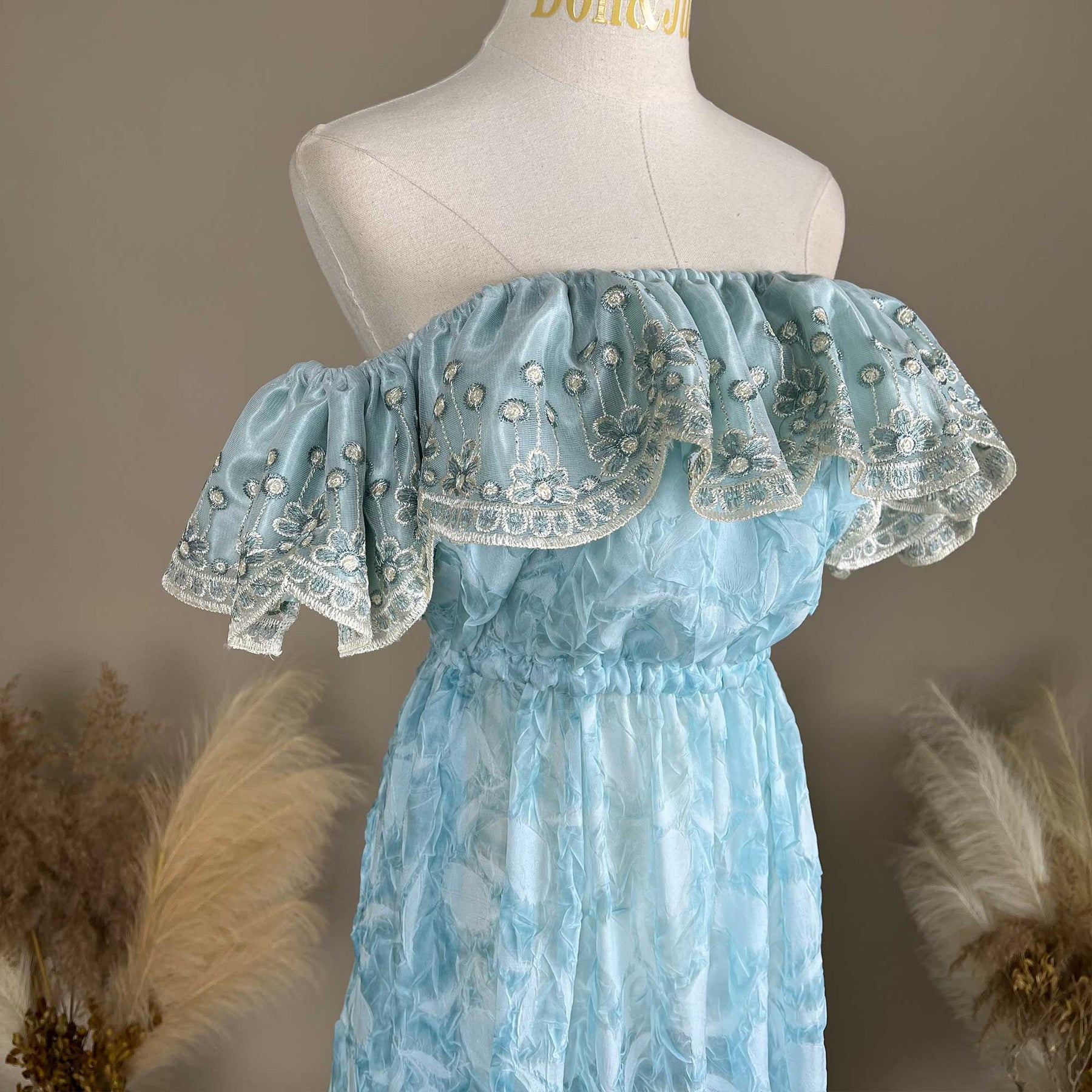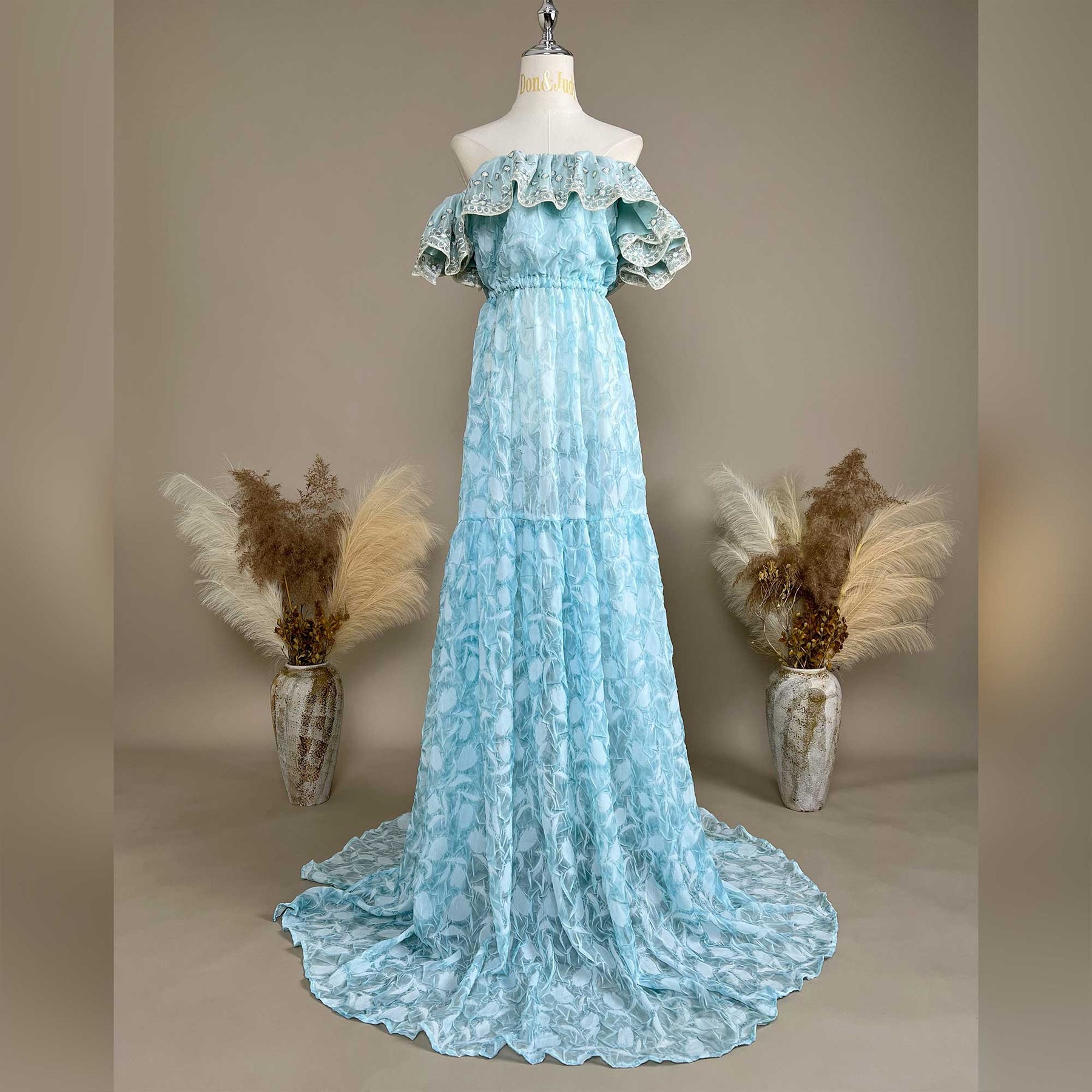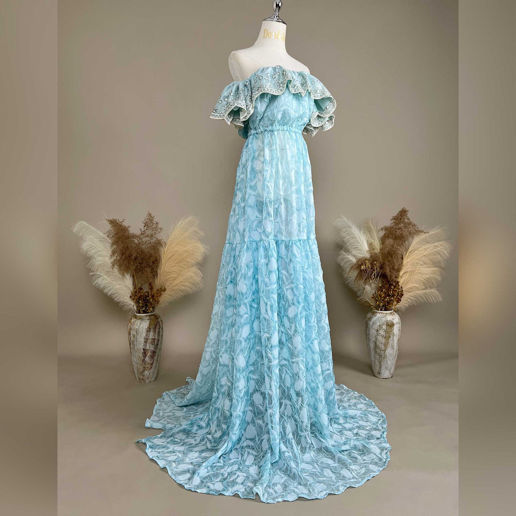 Product name: Blue Off-shoulder Gown – Maternity or Non-maternity Dresses for Photography Props Baby Shower Photo Props