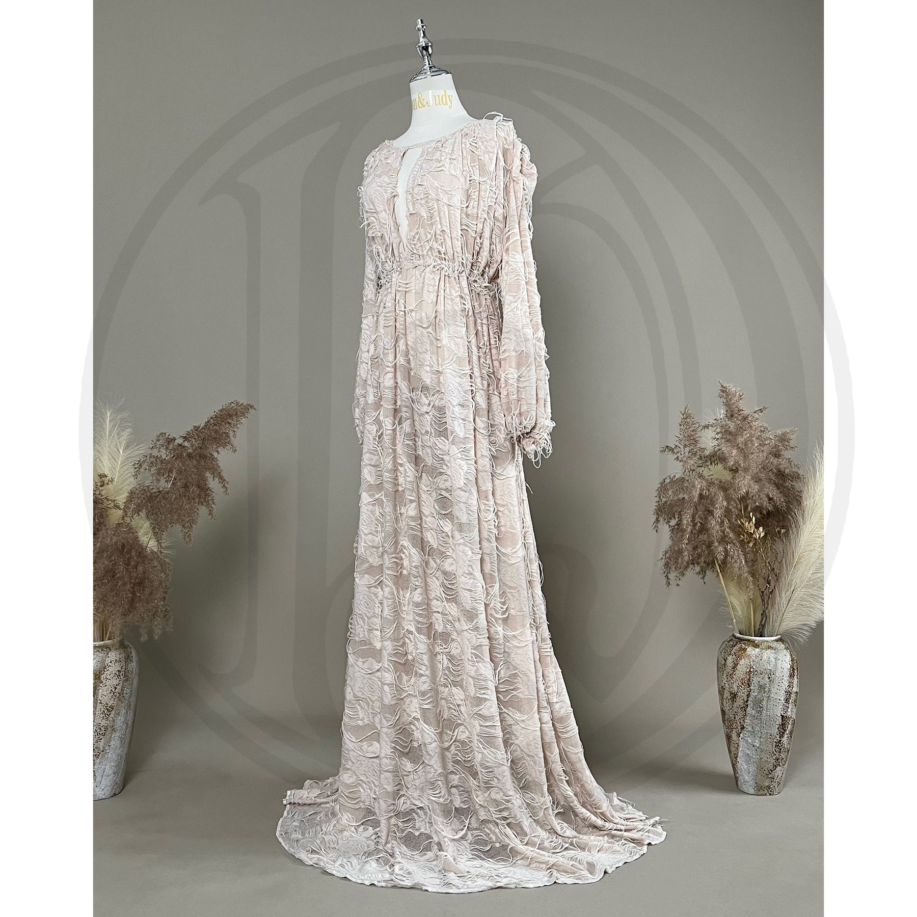 Product name: Boho Lantern Sleeve Side Slit Maternity and Non-maternity Gown Photography Dress Evening Party Baby Shower for Photo Shoot