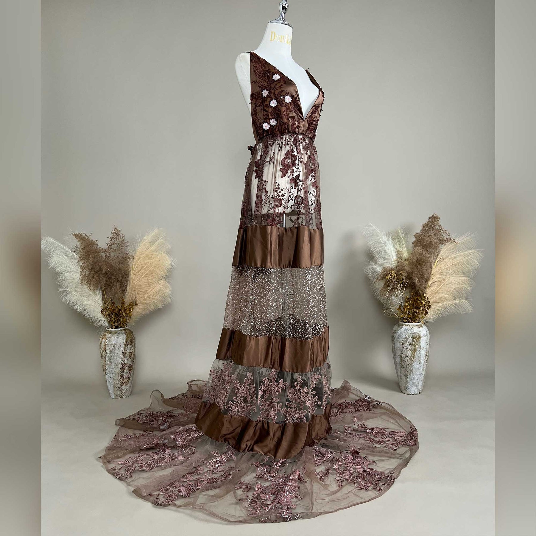 Product name: Elegant Lace V-neck Long Dress – Maternity or Non-maternity Gown Dresses for Baby Shower & Photography Props
