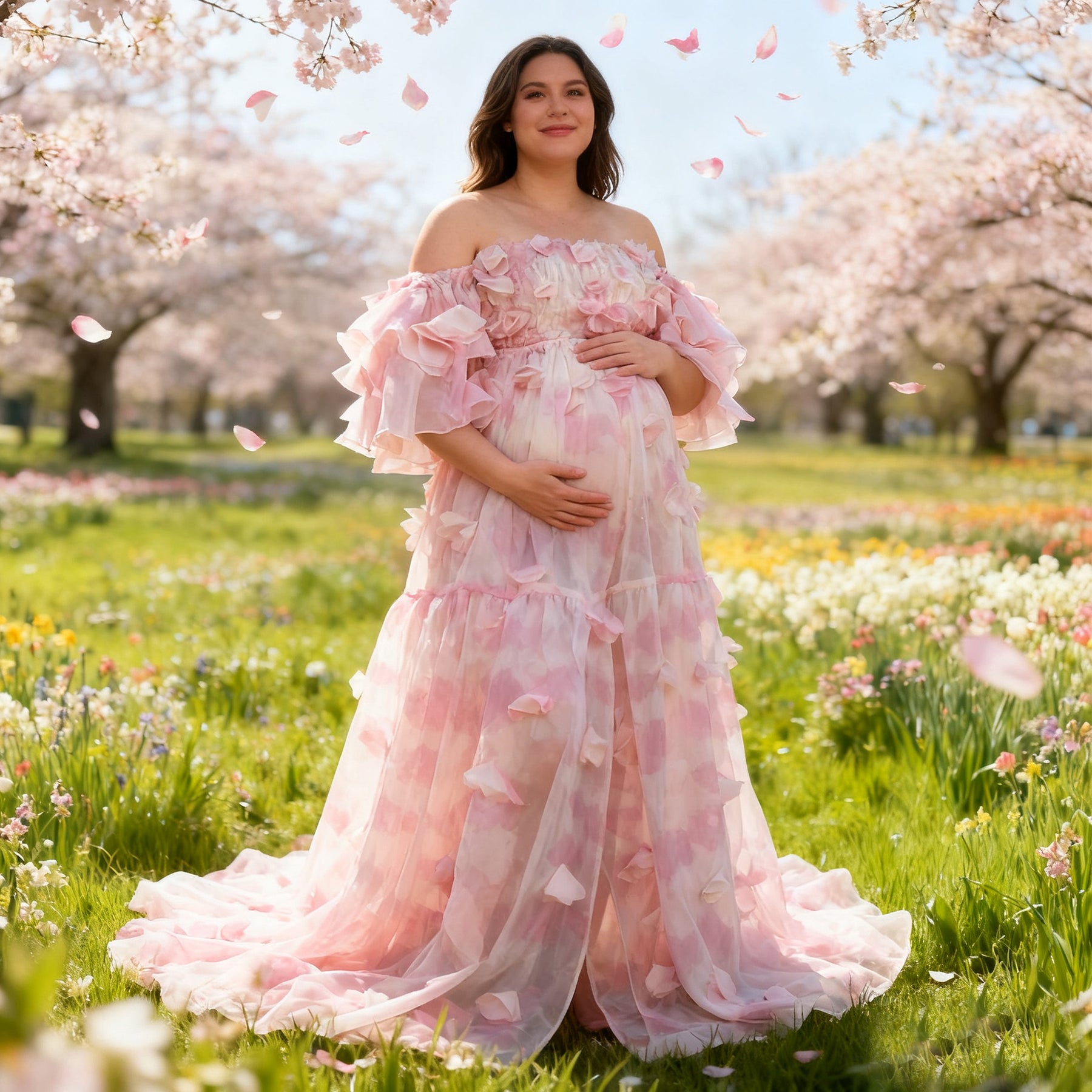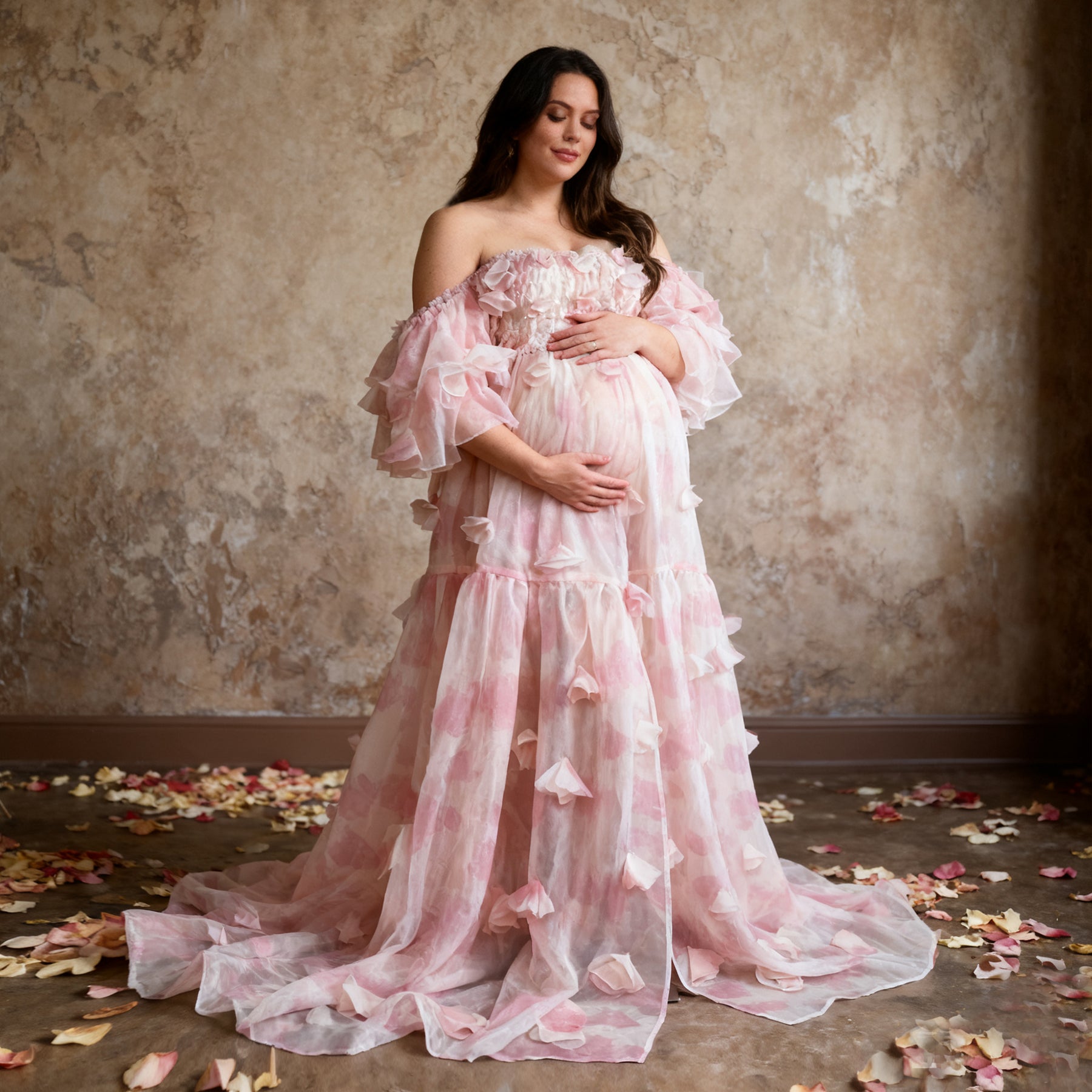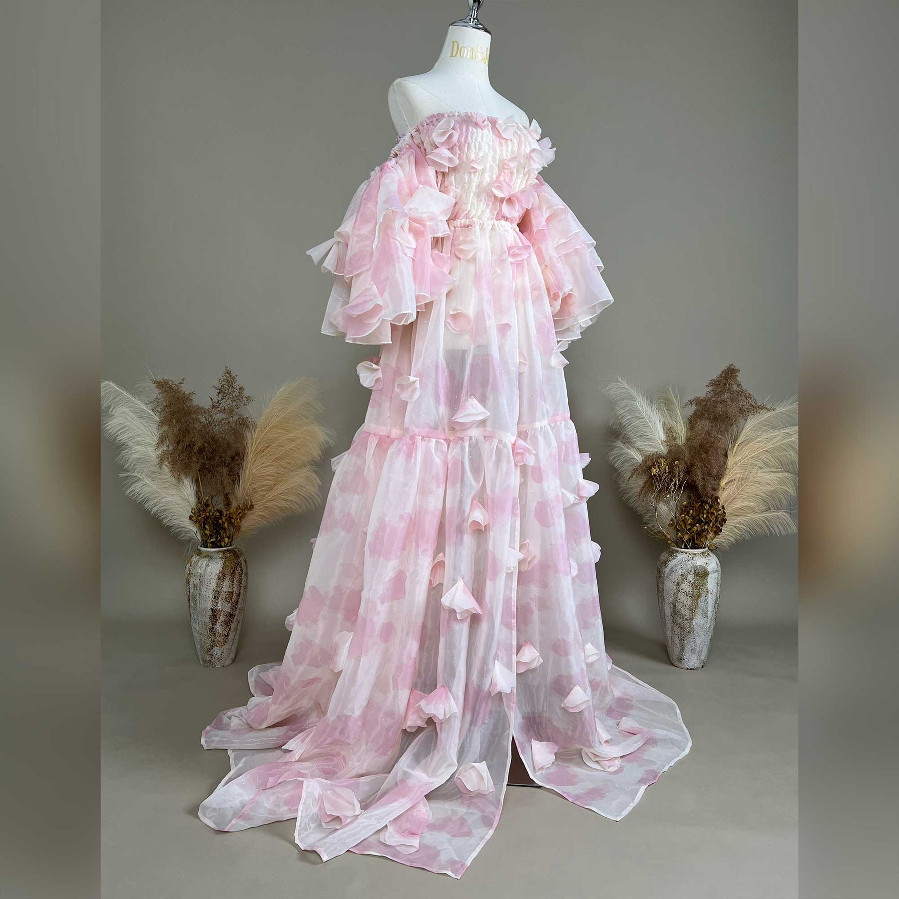 Product name: Romantic Pink Floral Dress – Maternity or Non-maternity Gown for Photography Props Baby Shower Photoshoot