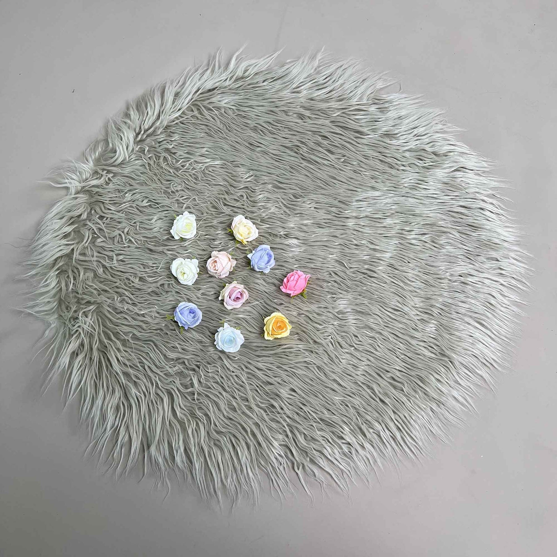 Photo Shoot Props Dia=60CM Round Long Pile Mongolia Faux Fur Blanket Basket Filler Infant Backdrop for Newborn Baby Photography Accessories