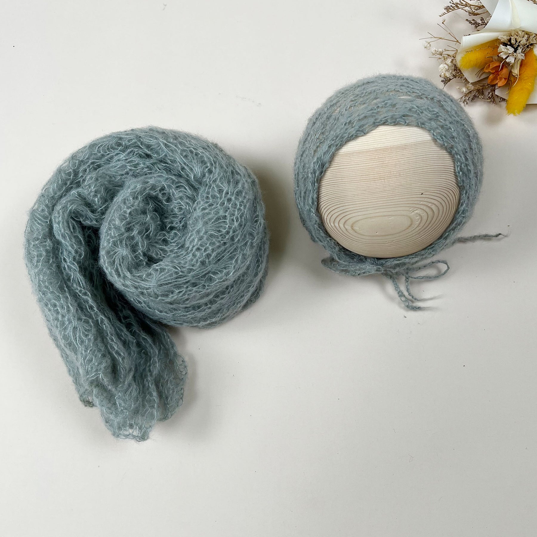 Stretchy Soft Knit Mohair Wrap with Hat Set