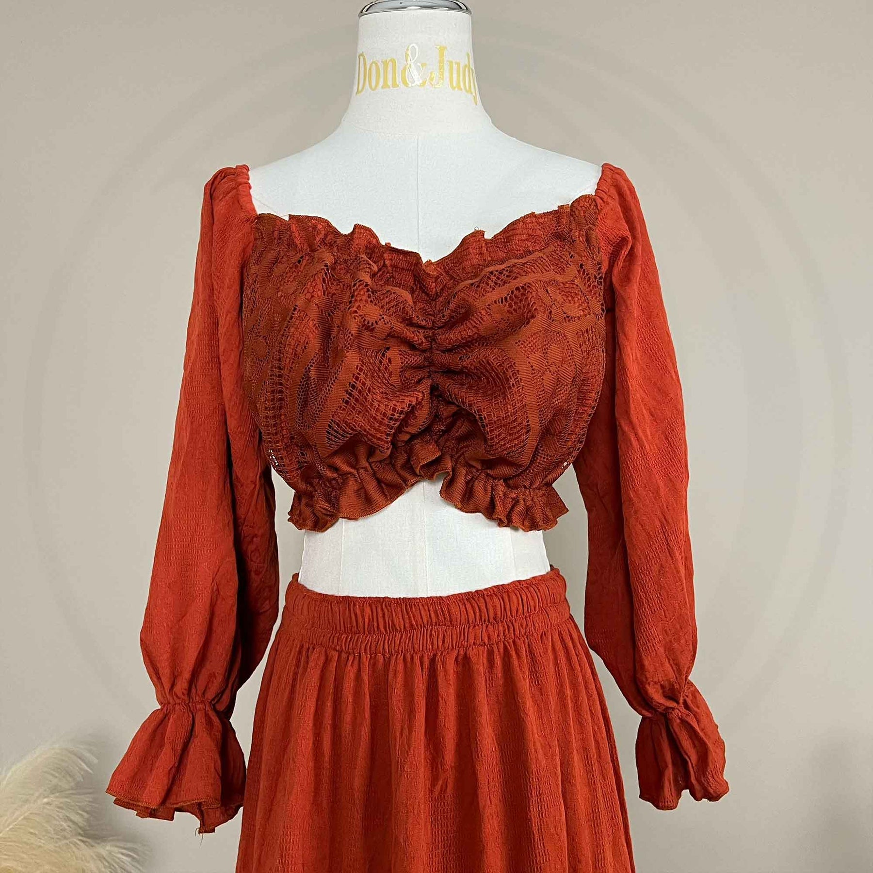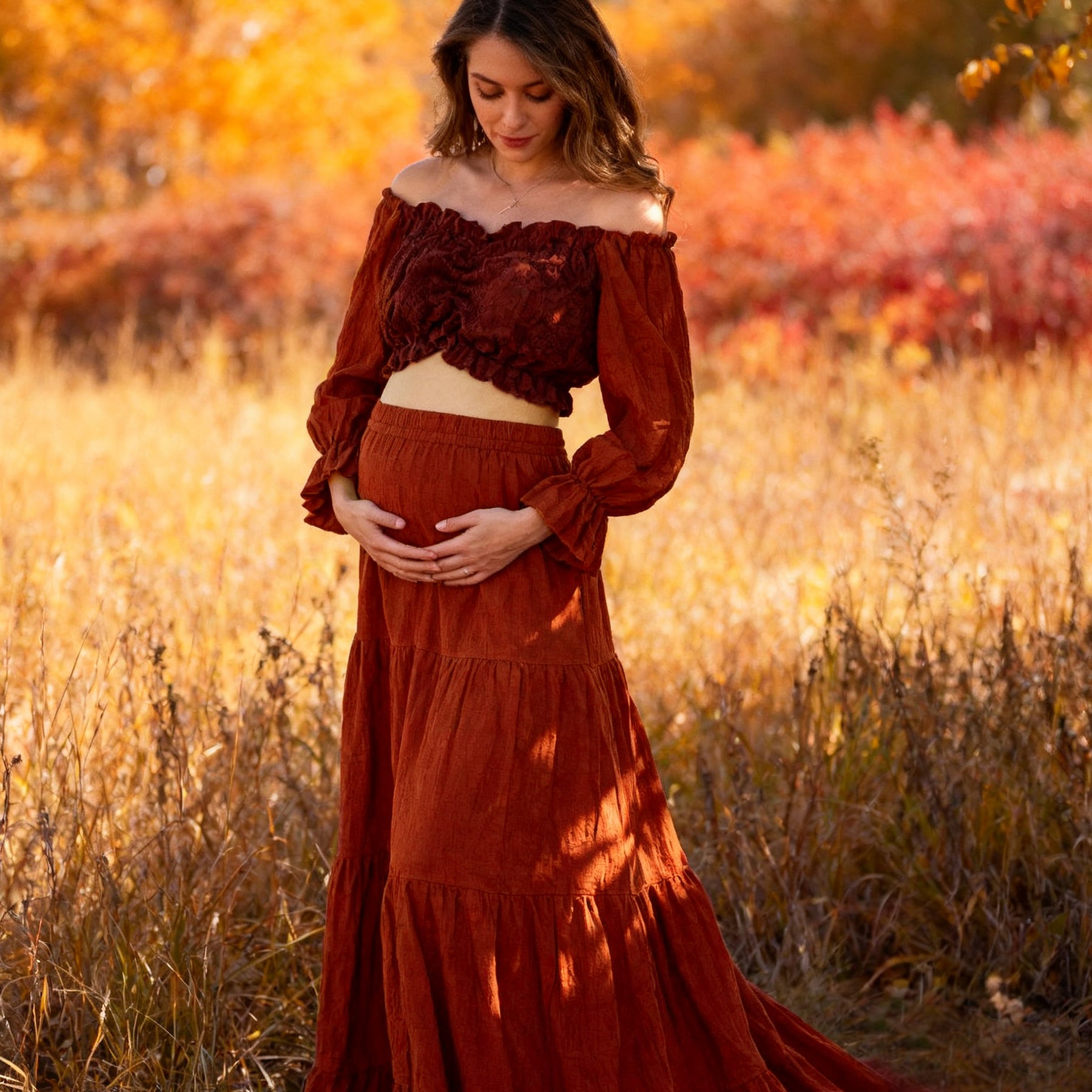 Product name: Autumn Boho Cotton and Lace Top and Skirt Set Maternity or Non-maternity Gown Party Dresses for Photography Props Baby Shower Photo Props