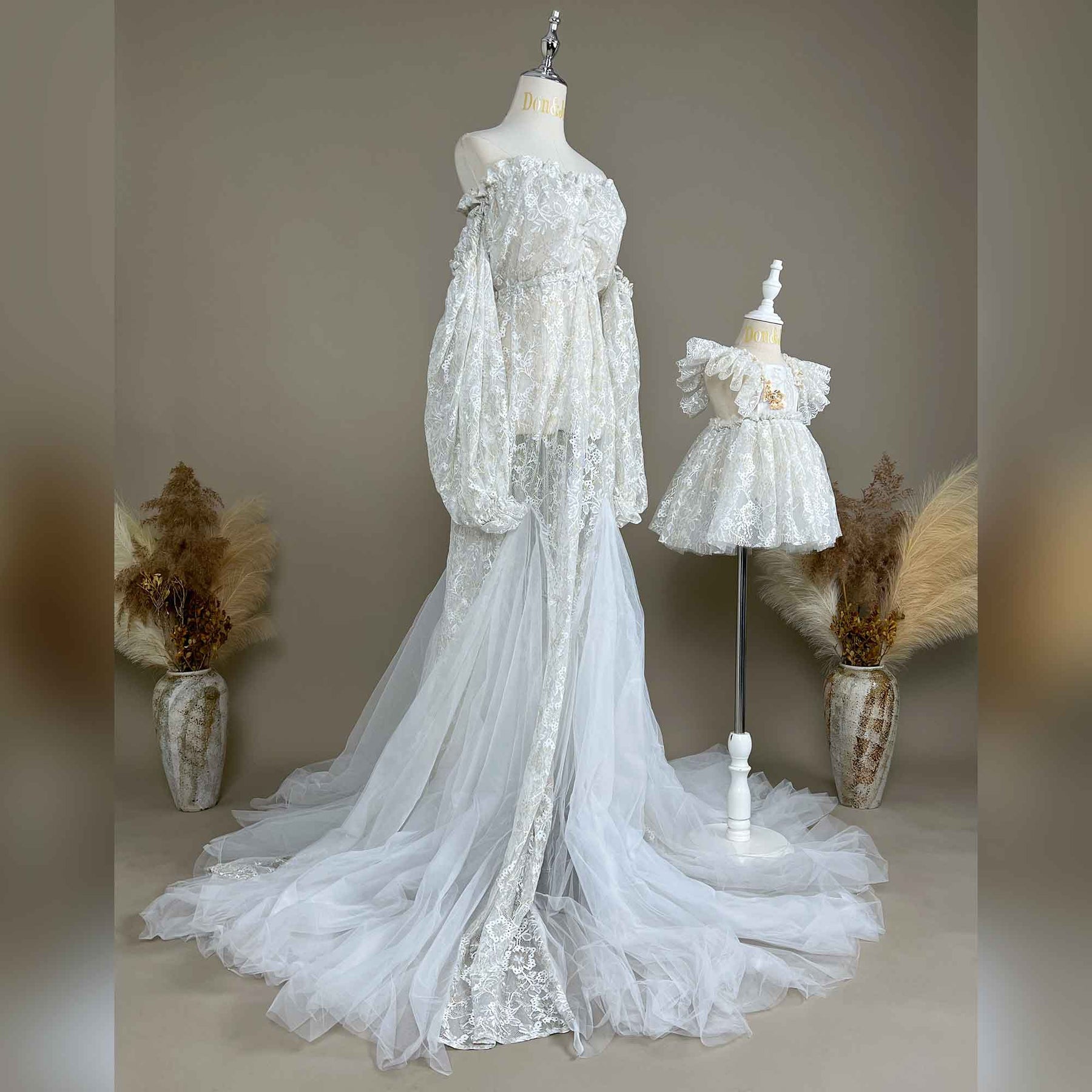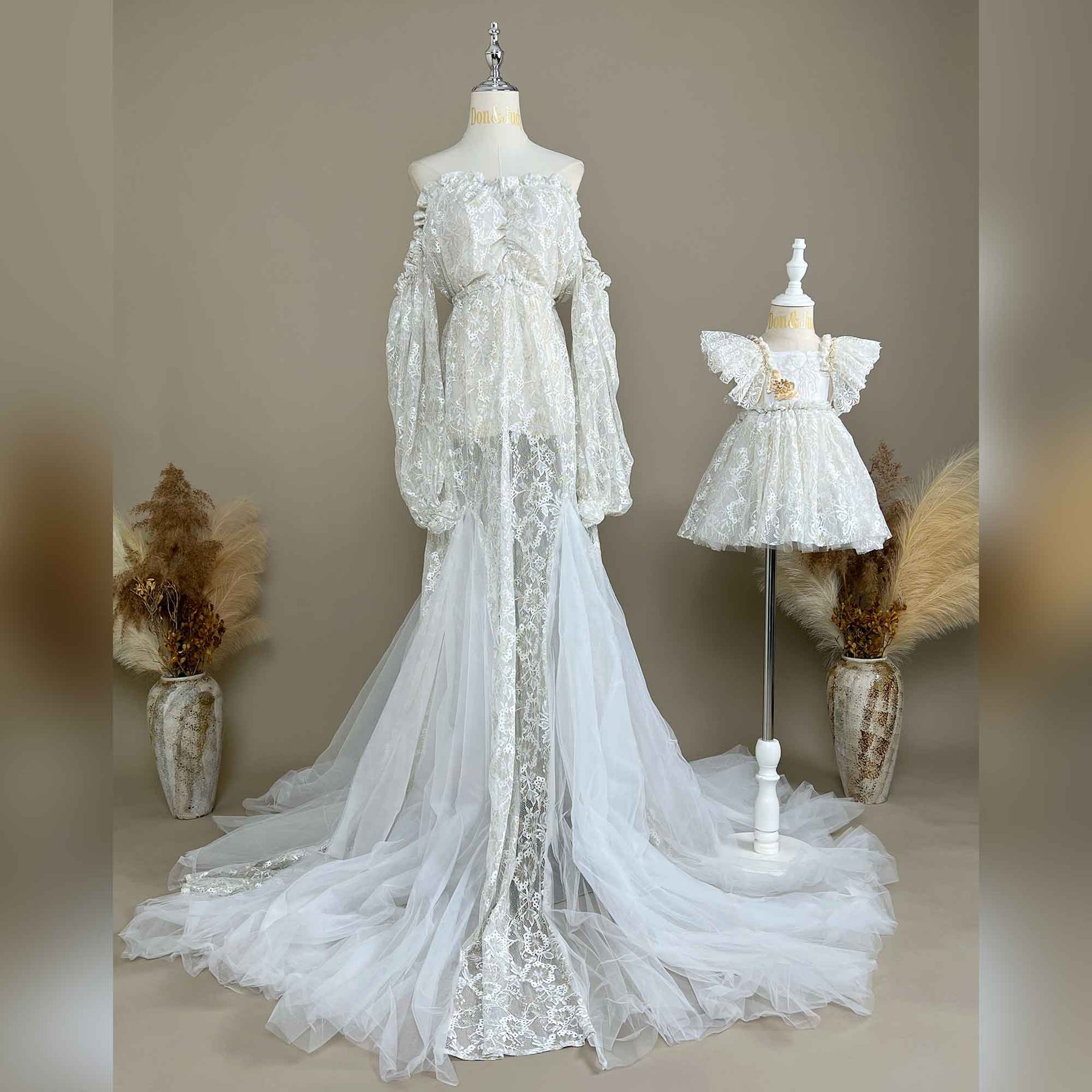 Product name: Elegant Lace Tulle Mommy & Me Dress Set – Matching Gowns for Maternity or Non-maternity Baby Shower Photo Props & Photography