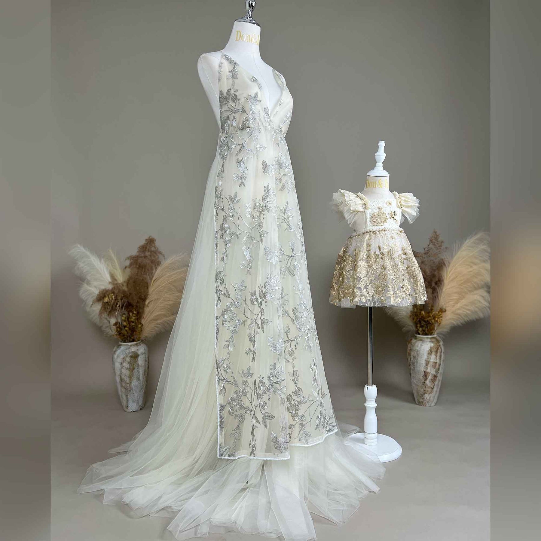 Product name: Elegant White Mommy & Me Tulle Dress Set – Matching Outfits for Baby Shower Photoshoot & Photography Props