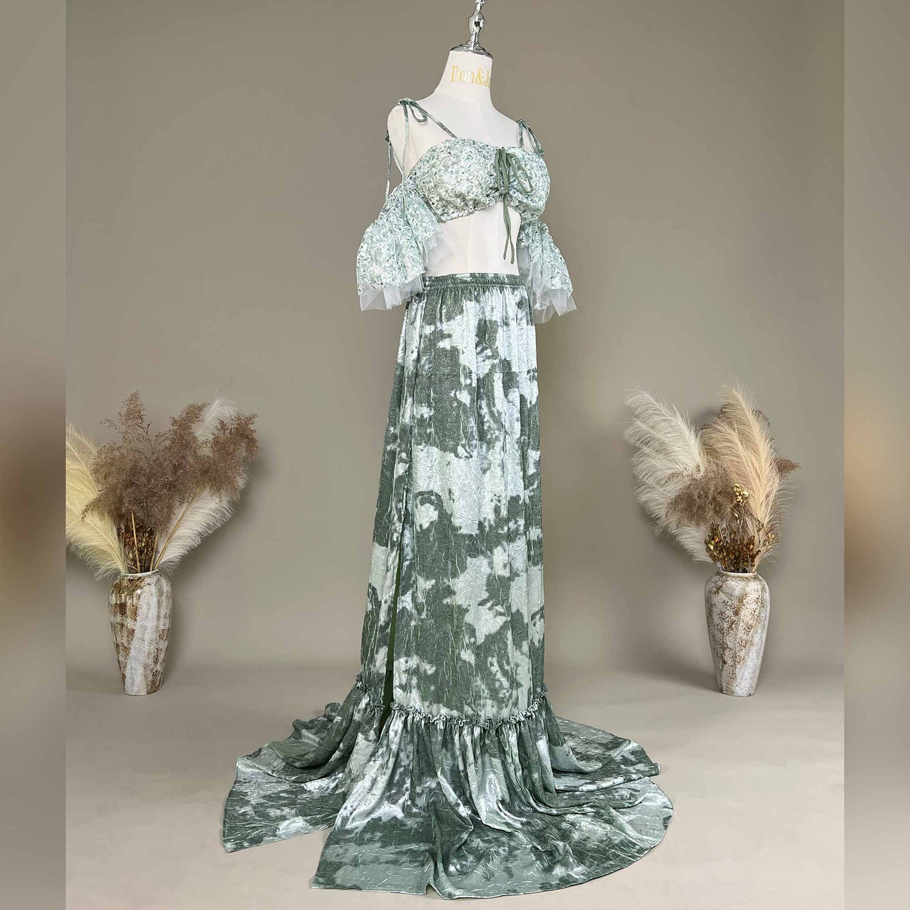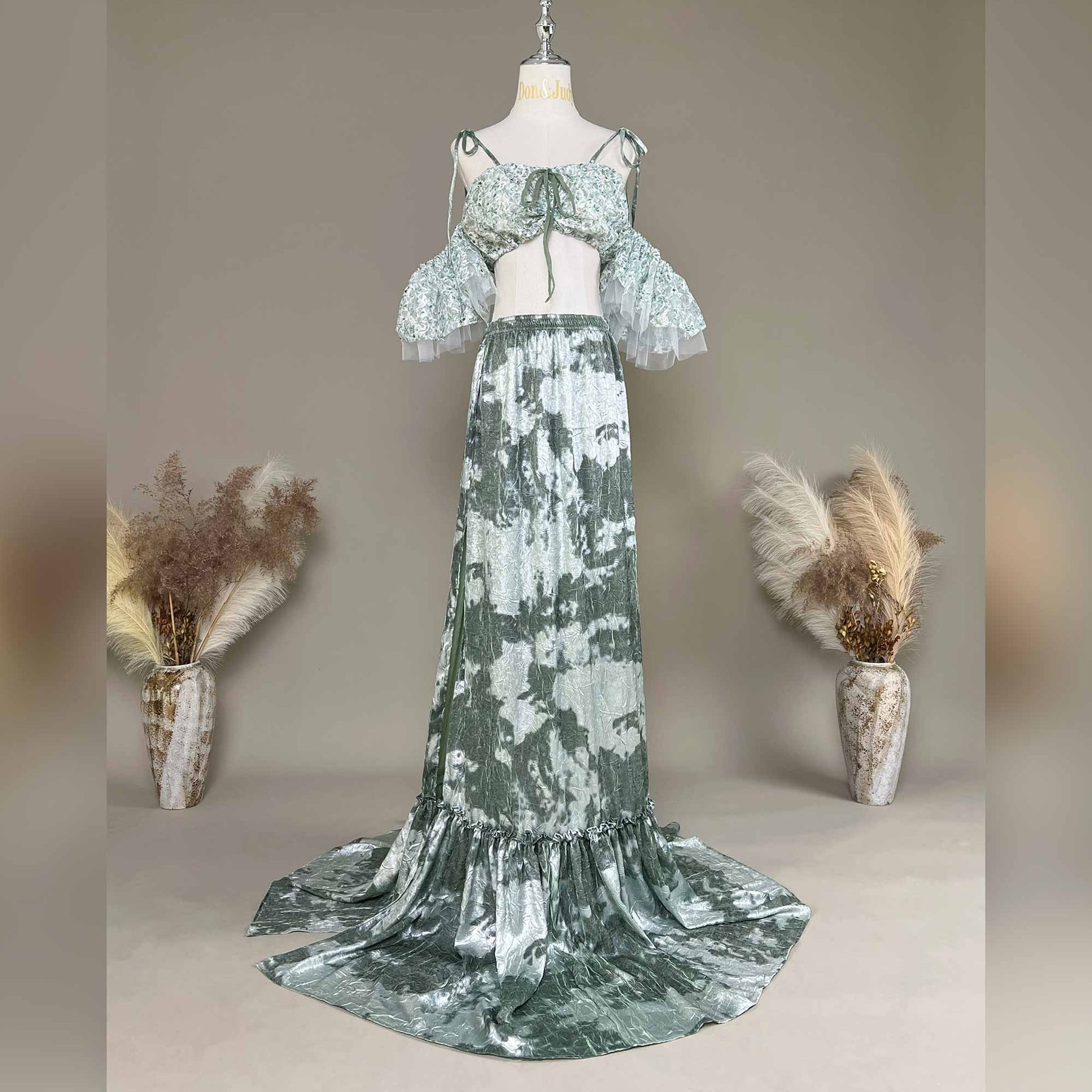 Product name: 2-piece Green Maternity or Non-maternity Gown Party Dresses for Photography Props Baby Shower Photo Props